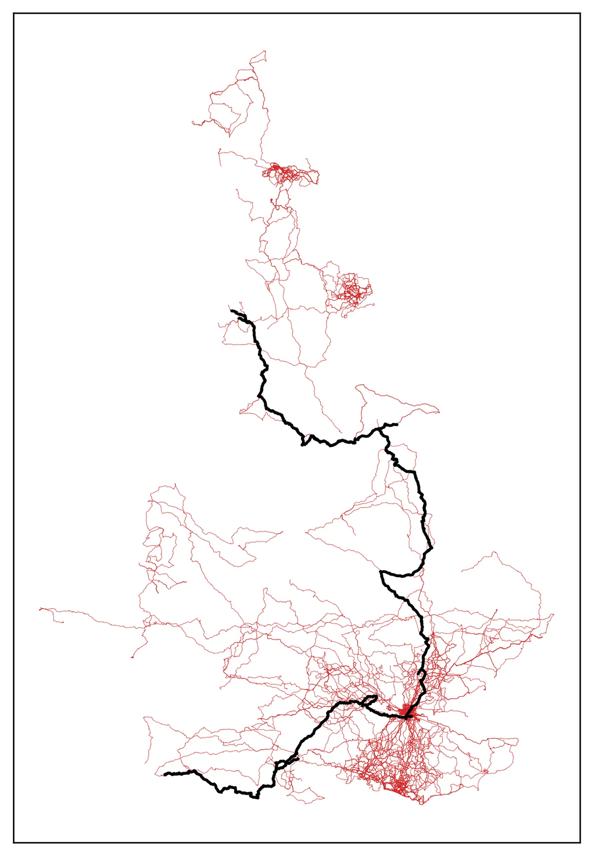 the hub of this cluster is the italian village where my great-grandfather lived before berkshire. i’ve done some loops from the village; cycled up to the village after mucking about in tuscany (that was also magic); from the village west for the torino-nice rally (2017); and to paris…where a train then took us out of the city hence the gap to the pink.